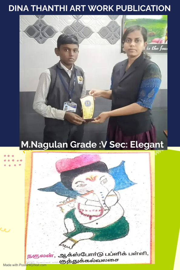 We are happy to share that the art work of our Oxfordian M.Nagulan, Grade: V Section: Elegant was published in the Children's Corner of the Esteemed Dina Thanthi Newspaper.