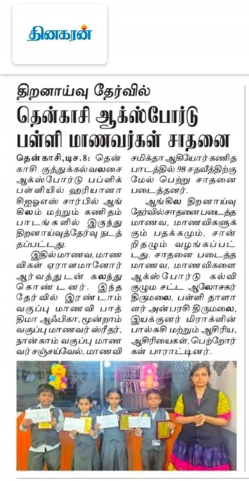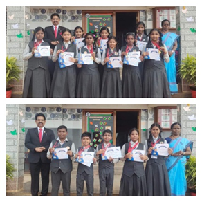 We congratulate our Oxfordians, M. Fathima Aafiqa from Grade: II, S. Sridhar from Grade: III, S. Shamiktha from Grade: IV, K. Sanjayvel from Grade: IV, S. Jeyarohith from Grade: I, S. Prathiksha from Grade: IV and K. Madhuri from Grade: VI for securing A1 Grade in the contest.