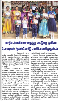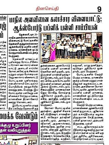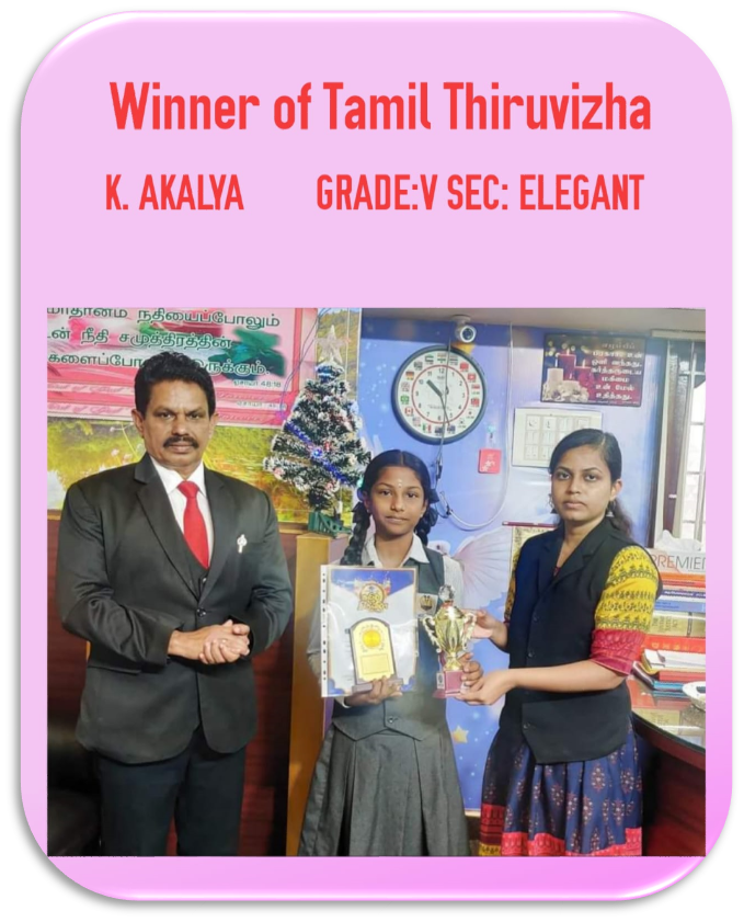 Tamil Thiruvizha event was organized in the month of June 2022 and several art and literature competitions were conducted for school students. Our oxfordian K. Akalya from Grade: V, Section: Elegant actively participated in the competition and won second prize.