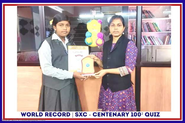We are delighted to share that our Oxfordian K.R. Harini from Grade: VII actively participated in the SXC - CENTENARY 100² QUIZ, A World Record Attempt Quiz and won Second Place. She was awarded with World Record Certificate and Trophy for her achievement.